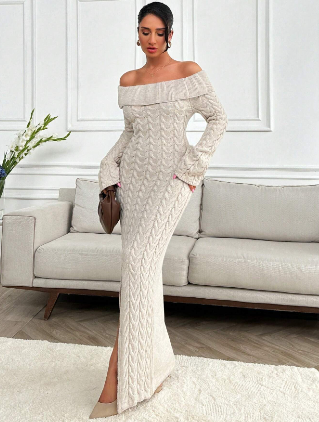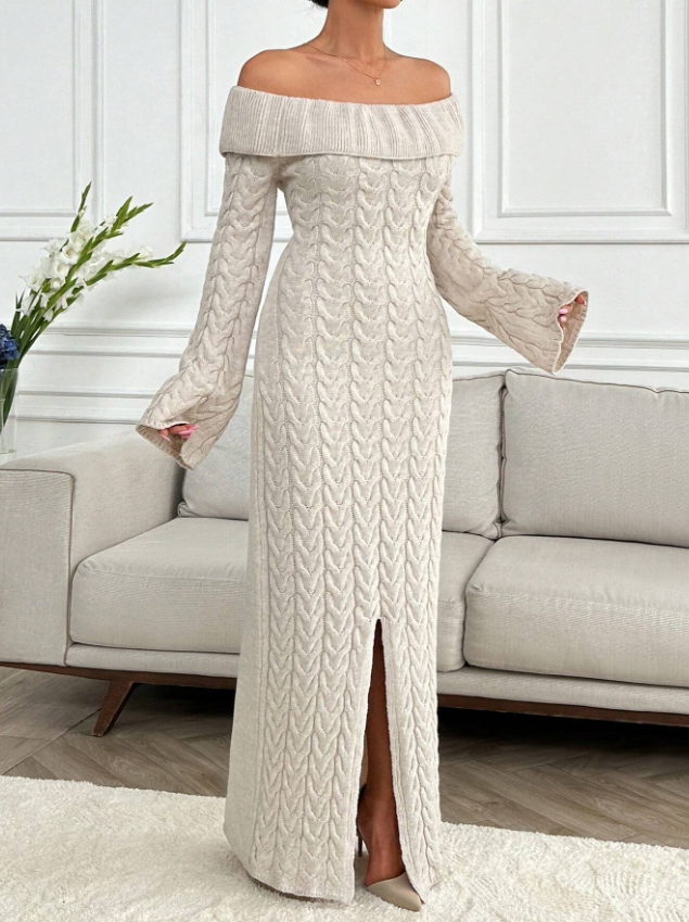 ✅ Design unicat – umerii goi și slitul lateral fac diferența
